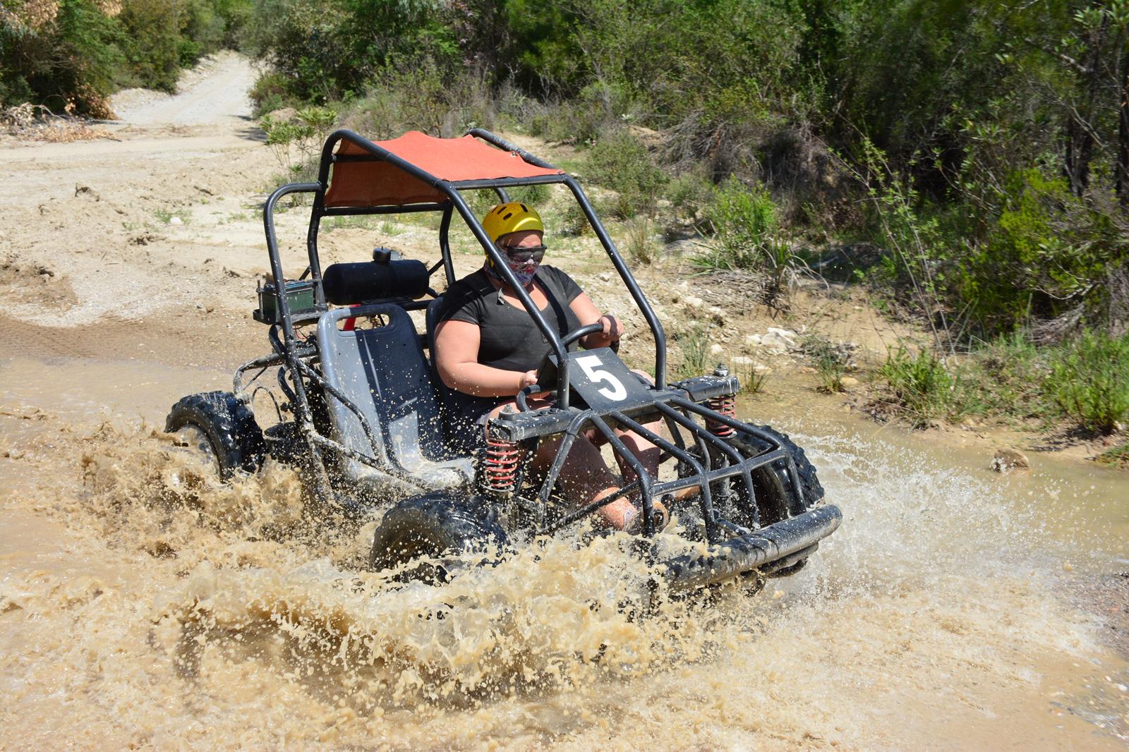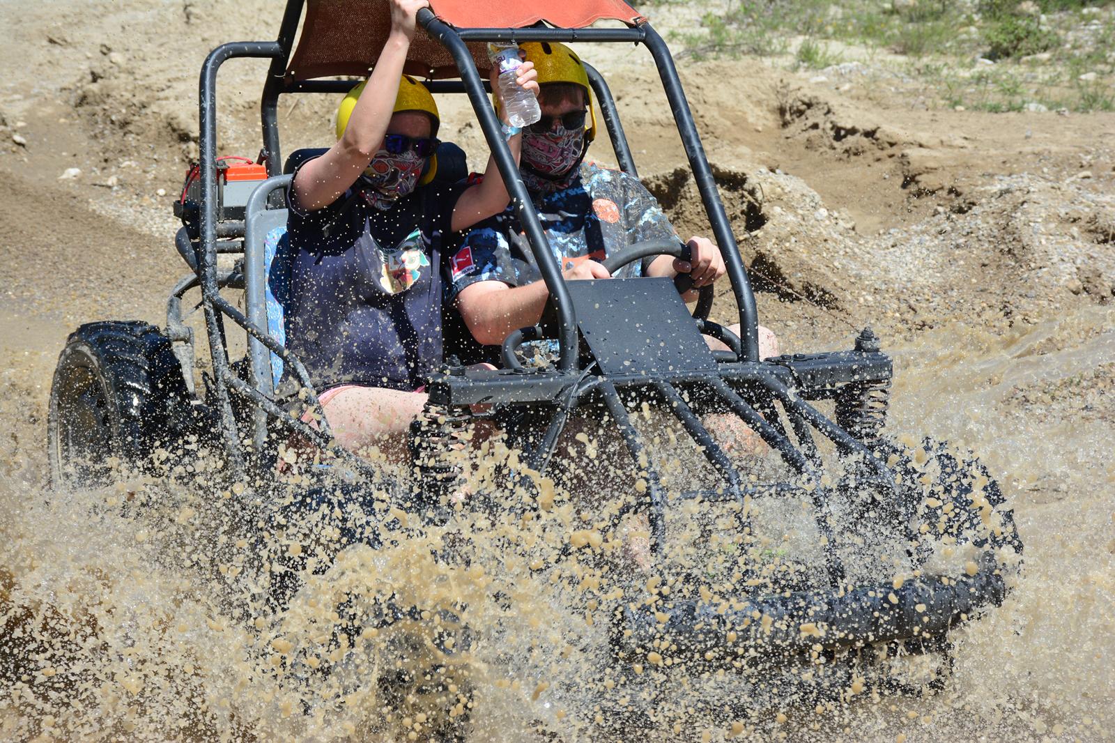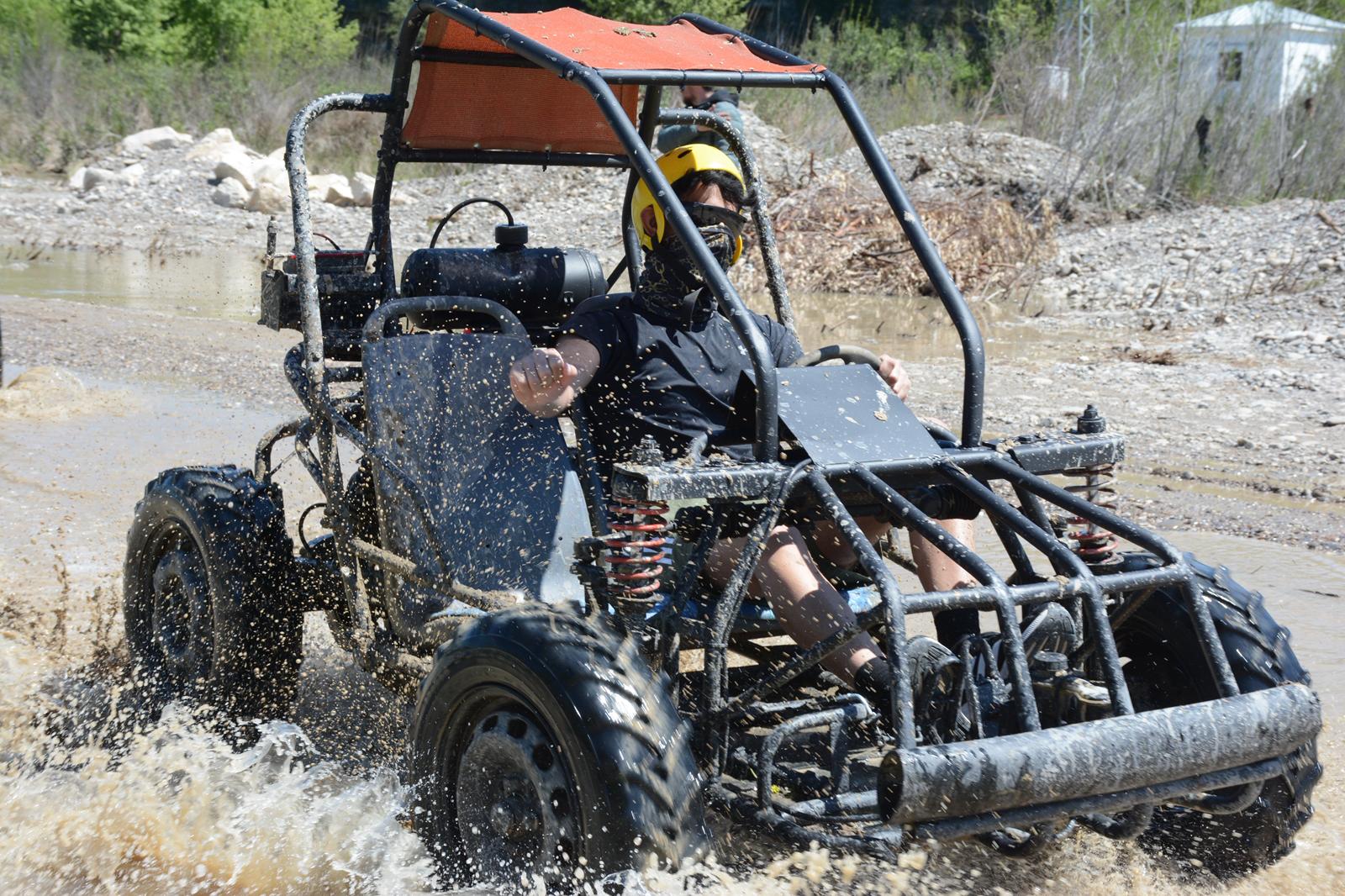Daha kontrollü ve konforlu bir sürüş isteyenler için Buggy Safari mükemmel bir seçim! Kısa bir eğitim seansından sonra, 2 kişilik Buggy aracınızı tozlu patikalarda, çamurlu derelerde ve Toros Dağları'nın vahşi güzelliklerinde sürünüyor.