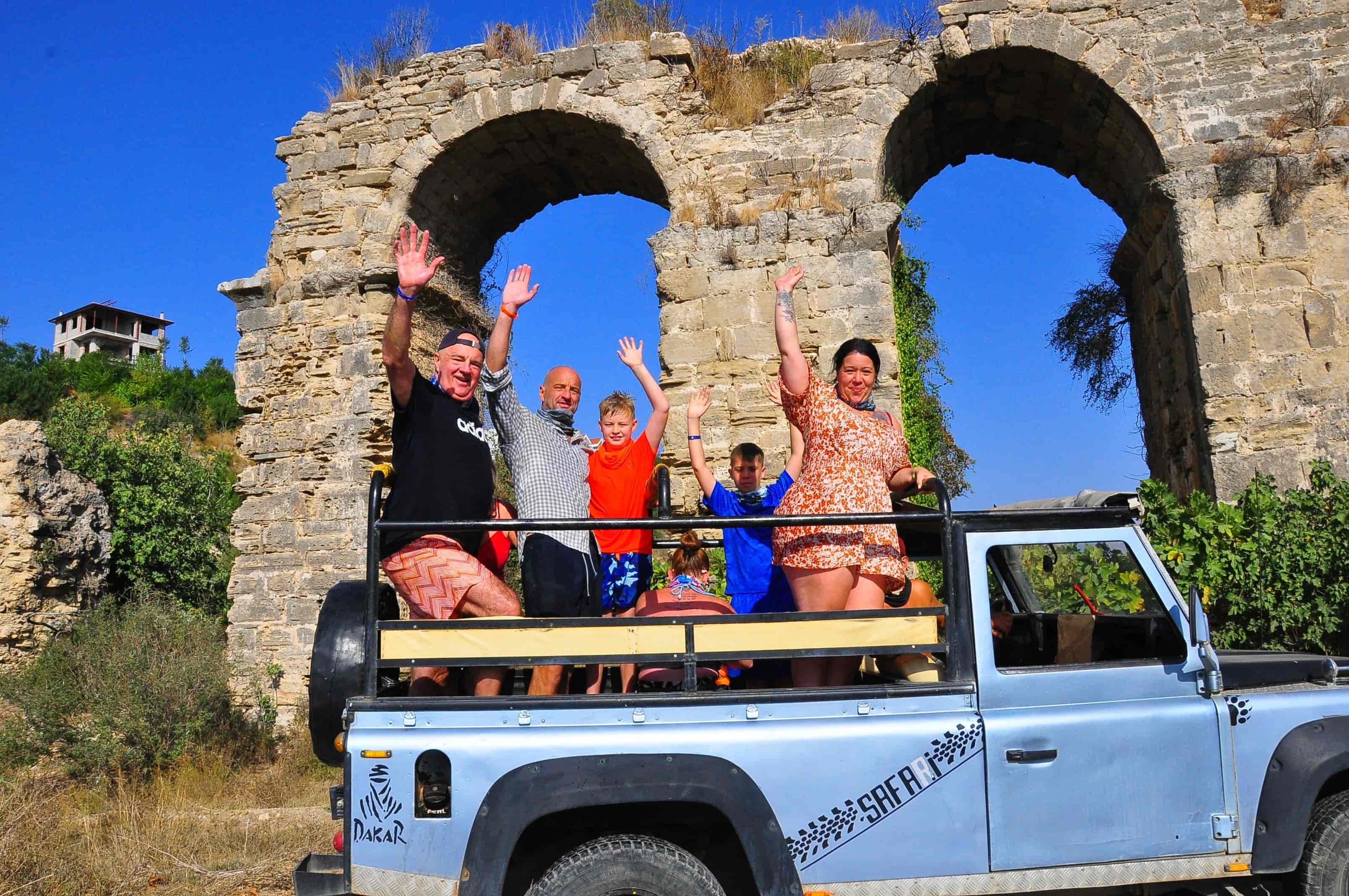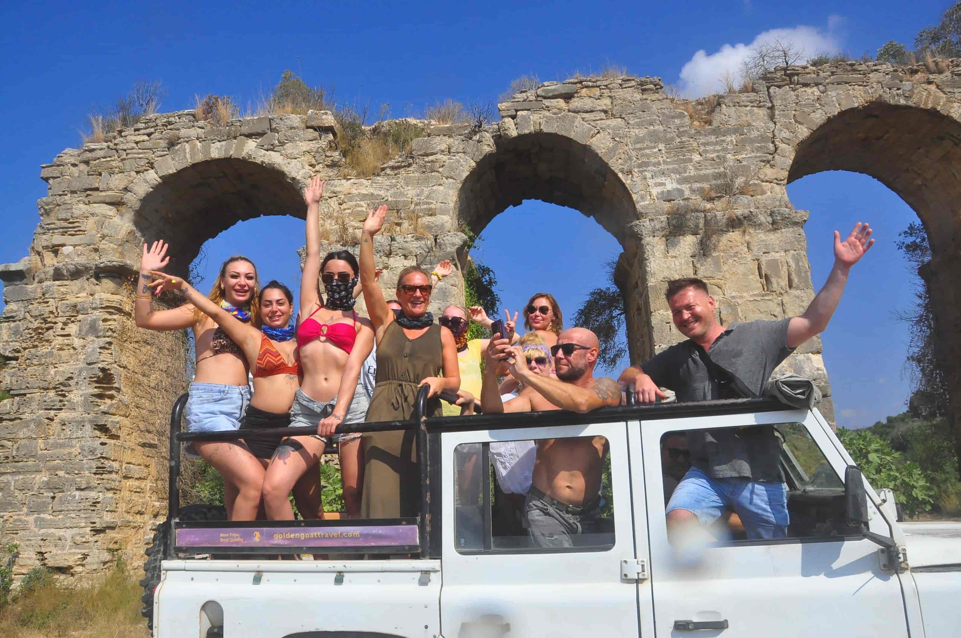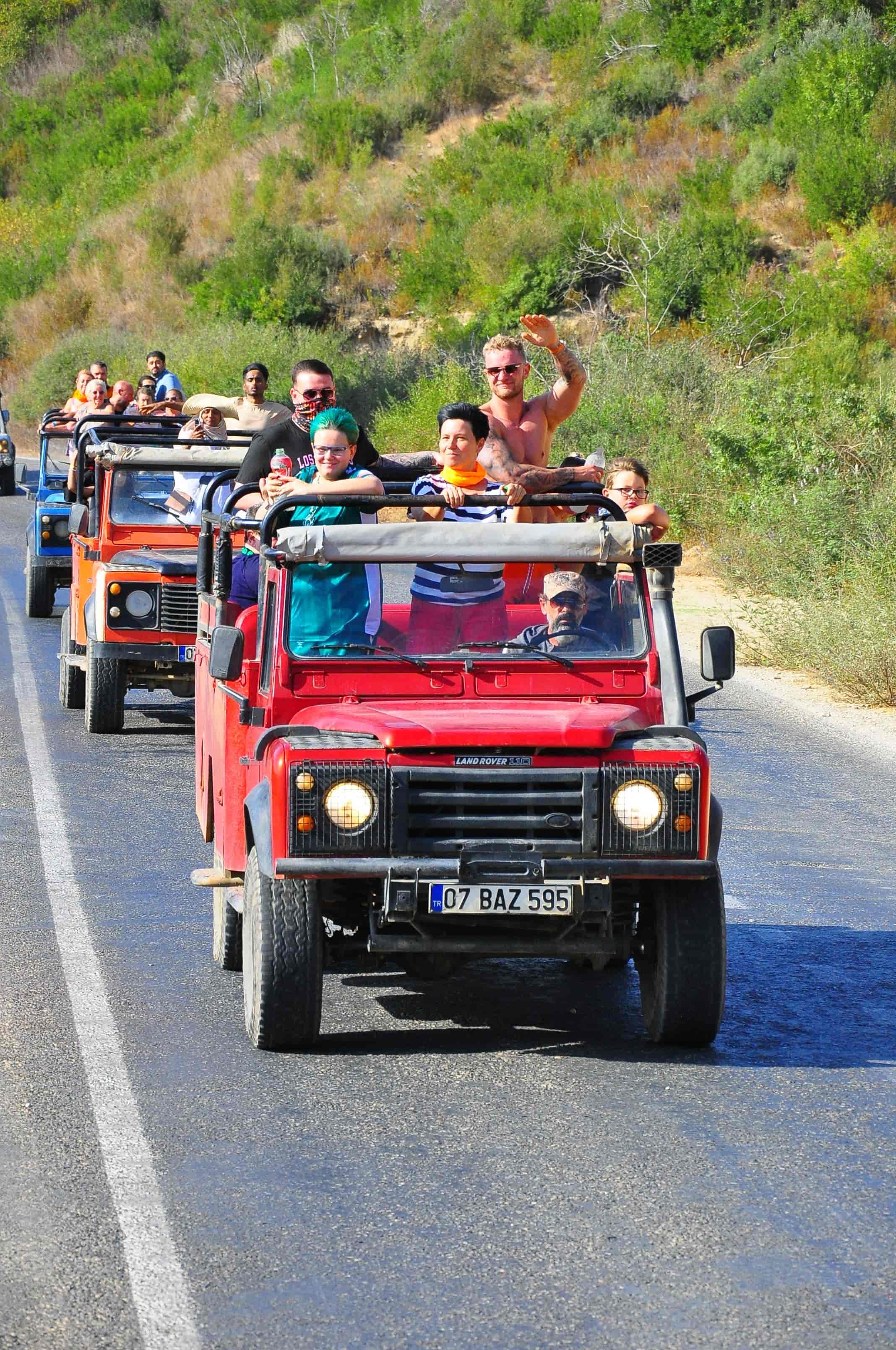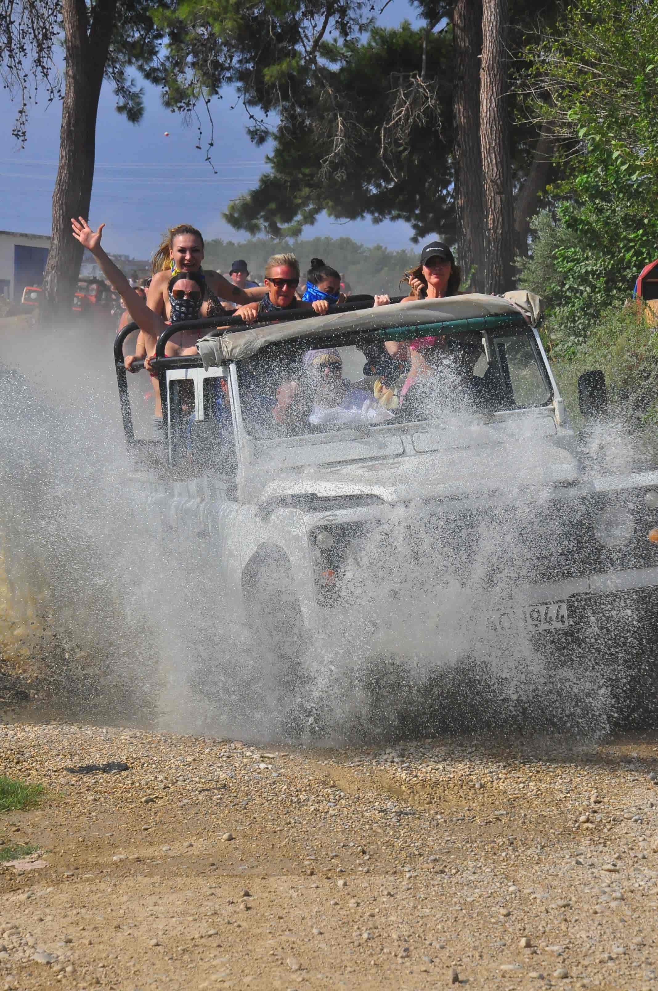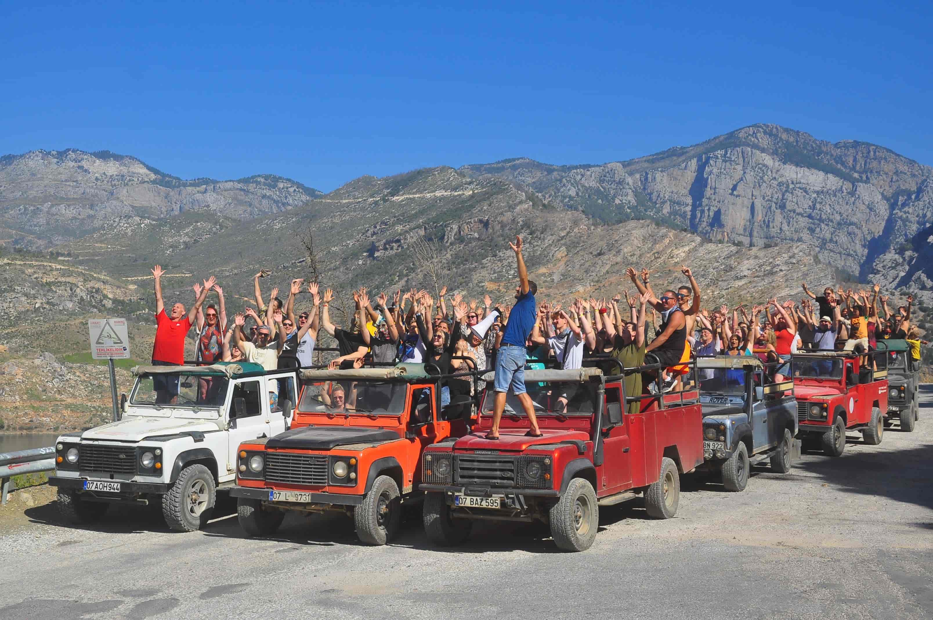 Günümüz sabah otellerinizden jeep transferleri ile başlar. Tüm misafirlerimiz belirlenen buluşma noktasından alınacaktır. Buluşma noktasına varışta 15 dakikalık bir beklemenin ardından su tabancası ve bandana alışverişi yapmak için zamanınız olacak. Hazır olduktan sonra misafirlerimiz jeeplerdeki yerlerini alacak ve jeep konvoyumuz hareket edecektir. Ormanın içinden 20 dakikalık bir sürüşün ardından konuklara tur hakkında bilgi verilecektir. Bu noktada muhteşem manzaralar eşliğinde Toros Dağları'na doğru ilerleyerek off-road parkurumuza başlayacağız. Bu yolculuk sırasında su savaşları yapacak ve fotoğraf molaları vereceğiz. Misafirlerimiz su tabancalarını şirketimizin su havuzundan doldurmak için belirli bir noktada duracaklardır. Ardından rota boyunca Roma dönemine ait su kemerlerini görerek Oymapınar Barajı'na doğru ilerleyeceğiz. Yeşil Kanyon'da 15 dakikalık bir fotoğraf molası vereceğiz. Fotoğraf molasından sonra lezzetli bir dinlenme için restoranımıza geçeceğiz. Restoranımızda misafirlerimizin 30 dakika boyunca içecek ve gözleme satın alabilecekleri bir köpük gösterisi düzenlenecektir. Dinlenme molasının ardından 1 saat 15 dakika süren, 45 dakikalık göl gezisi ve 30 dakikalık yüzme molası ile tekne turumuza başlıyoruz. Tekne turunun ardından öğle yemeği servisi için restoranımıza döneceğiz. Self-servis yemeklerimiz tavuk, makarna ve salatalardan oluşacaktır. Yaklaşık 40 dakikalık bir öğle yemeği molasının ardından ciplerimize döneceğiz. Yaklaşık 20 dakika camiyi ziyaret etmek için bir köyde duracağız; 10 dakika boyunca İslam hakkında bilgi edineceğiz ve ardından 10 dakikalık bir fotoğraf molası vereceğiz. Son olarak Manavgat Şelalesi'ne gideceğiz. Burada vereceğimiz yarım saatlik molanın ardından jeeplerle otellerimize döneceğiz.