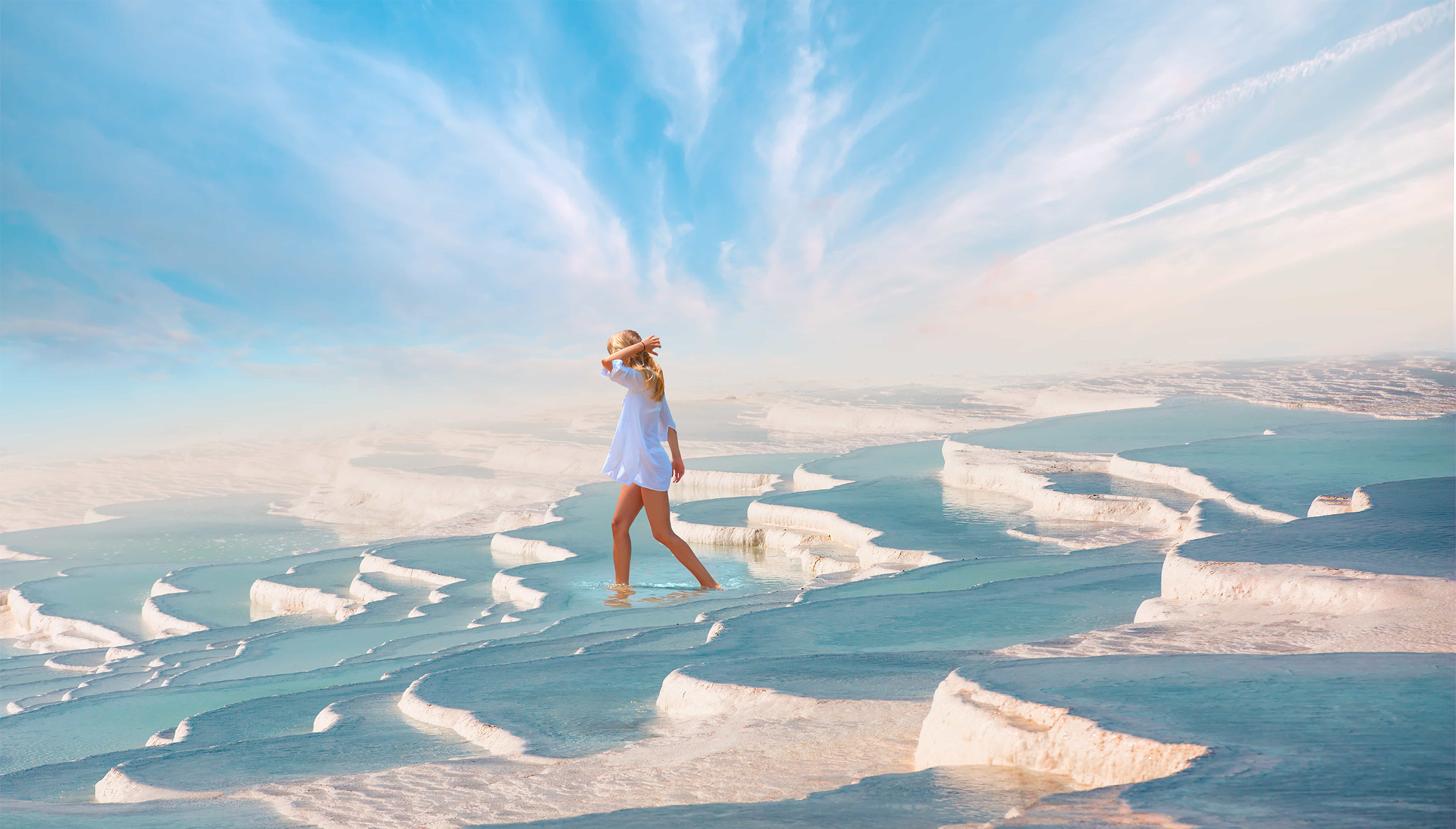 Doğanın eşsiz mimari harikası Pamukkale'yi keşfetmek için Side'den bir yolculuğa çıkın! Kaleler sadece insanlar tarafından inşa edilmez; Doğa, bu tür başyapıtlar yaratmada genellikle onları aşar. Bunun en güzel örneği, Türkiye'nin güneybatısındaki Denizli ilinde bulunan ve UNESCO Dünya Mirası Listesi'nde yer alan dünyaca ünlü Pamukkale'dir. Milyonlarca yılda akan termal sularla oluşan göz kamaştırıcı beyaz traverten terasları ile Pamukkale görsel bir şölen sunuyor. Ayrıca kalp hastalıkları, romatizma, sindirim, solunum, dolaşım ve cilt rahatsızlıklarına faydalı olan şifalı suları ile bilinir. Denizli şehir merkezine sadece 20 km uzaklıkta yer alan, vadinin karşısındaki tepelerden görülebilen bu doğa harikası, Laodikeia Antik Kenti'ne sadece 5-10 km, uluslararası bir termal merkez olan Karahayıt Köyü'ne ise 5 km uzaklıktadır.